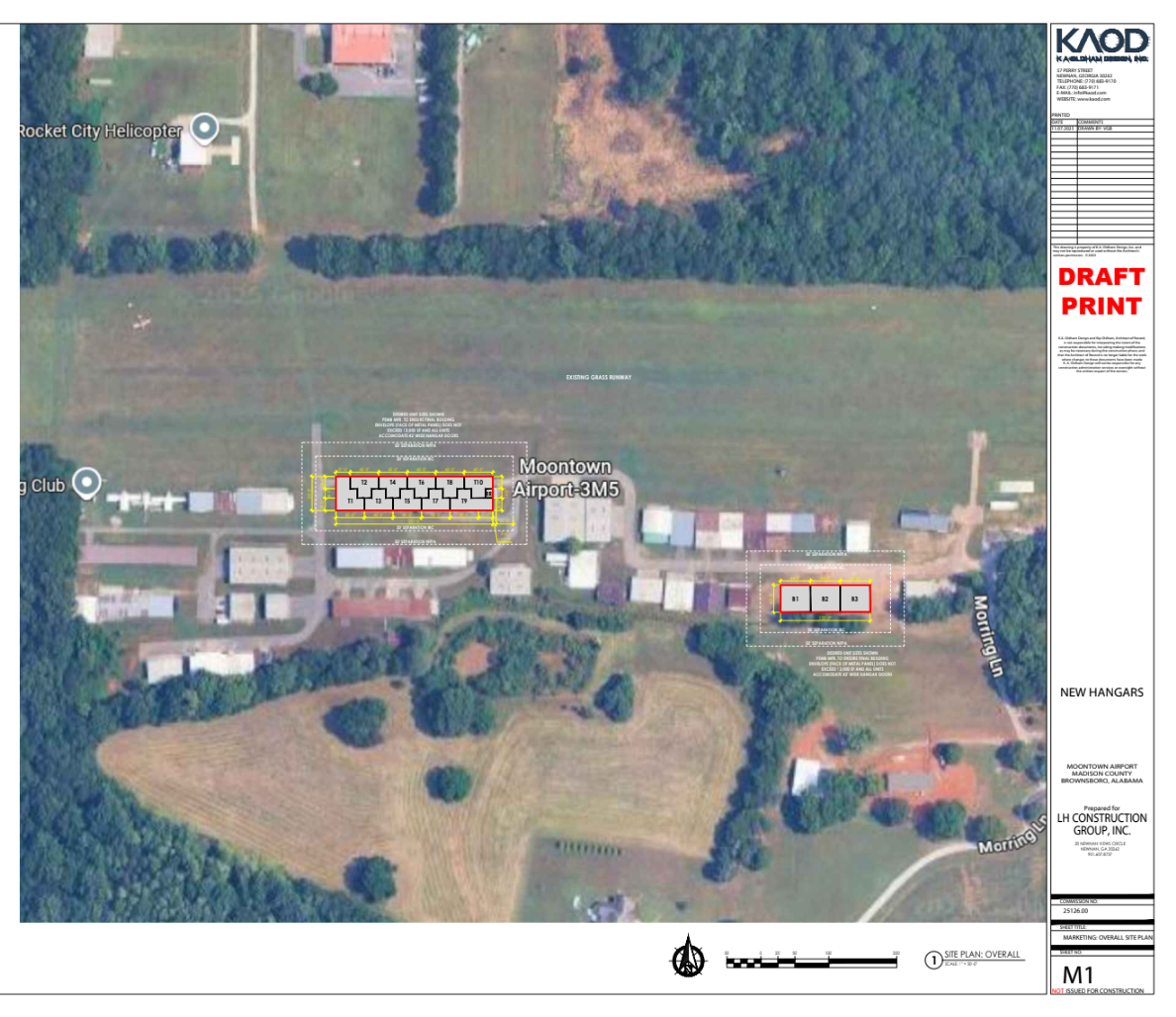 The 3M5 Airport Inc. board of directors is excited to announce that we have signed a letter of intent with LH Construction to develop T-hangars and Box hangars (see Airport Hangar Map). Each hangar will have insulation, a bi-fold electric door, LED lights, and a 100-amp panel. If you would like to take a look at hangar details and all the hangar build projects LH Construction has going on, go to LH Construction - Premium Hangars.